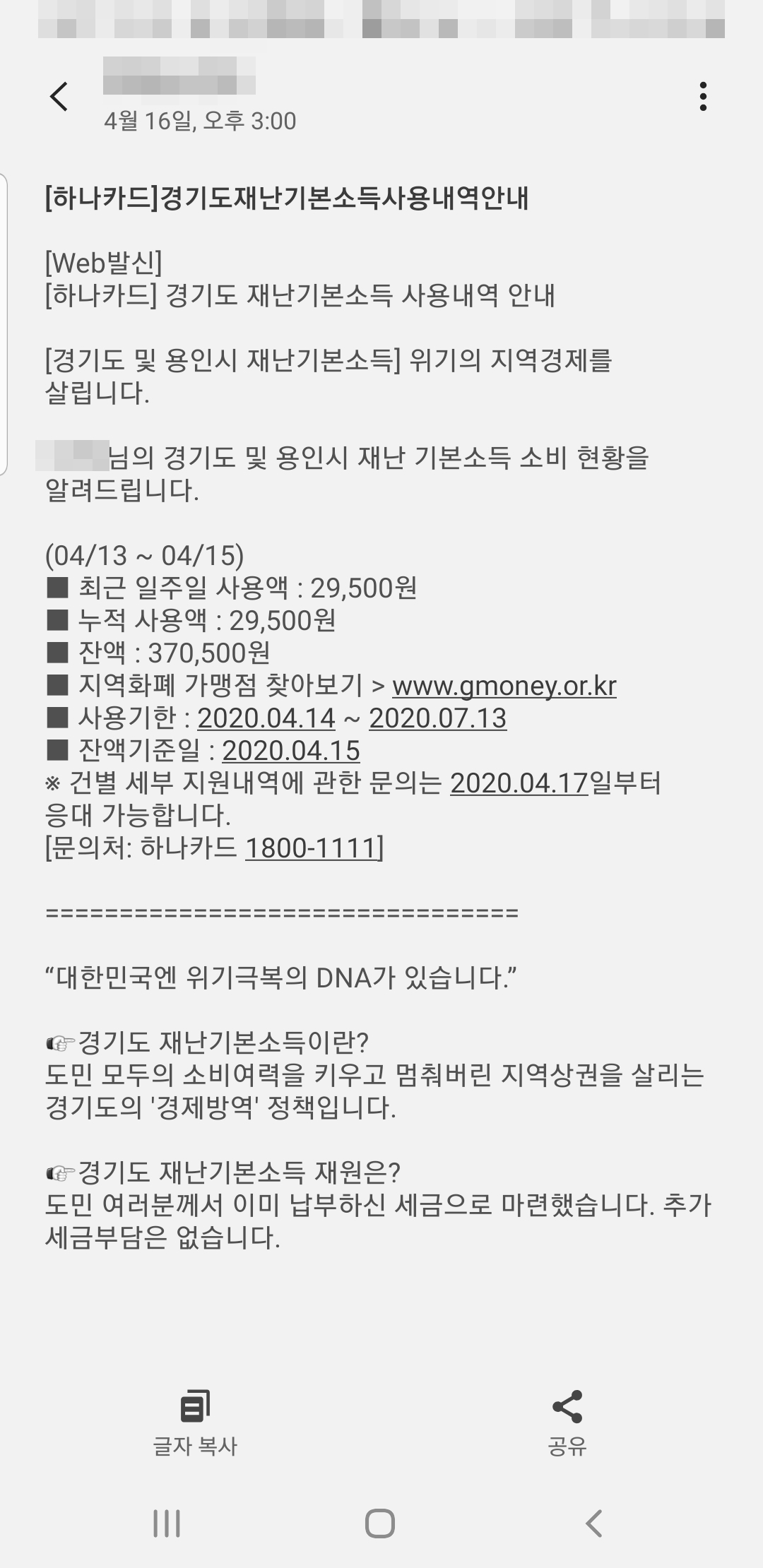 2020/04/14 - [활동] - 경기도 재난기본소득 접수 완료 문자 (카드 승인 문자)
