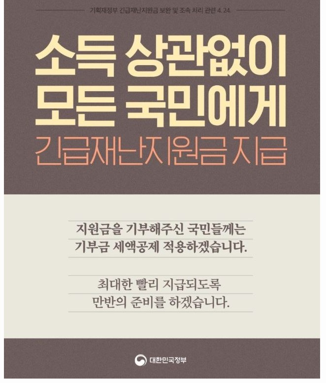 4월 30일 기획재정부에서 추가 경정예산 국회확정이 되었습니다.