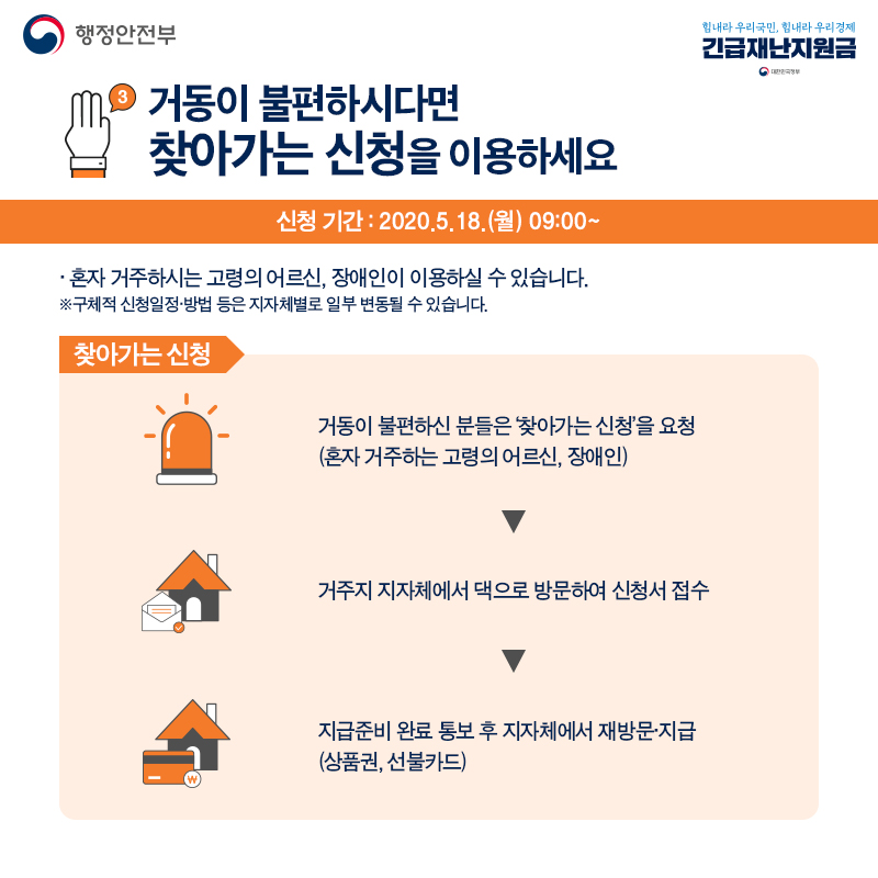 마지막으로 거동이 불편하신 고령의 어르신, 장애인은 찾아가는 신청을 요청할수 있으며