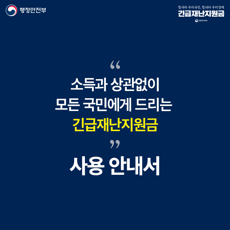 지난 포스팅에서도 말씀드린것처럼 소득관계없이 전국민에게 지원되는 긴급재난지원금입니다.