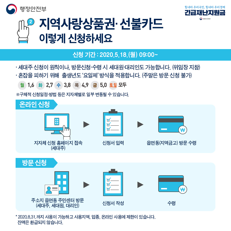 신용카드와 다르게 상품권(지역사랑상품권, 선불카드)는 5월 18일부터입니다.