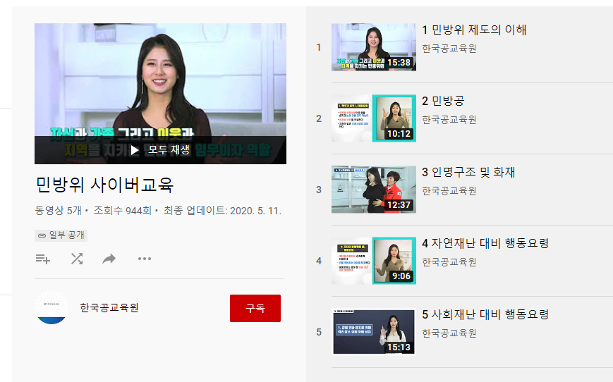 민방위에 대해 궁금하신분은 아래 유튜브에도 한국공교육원에서업로드 되어 있습니다.