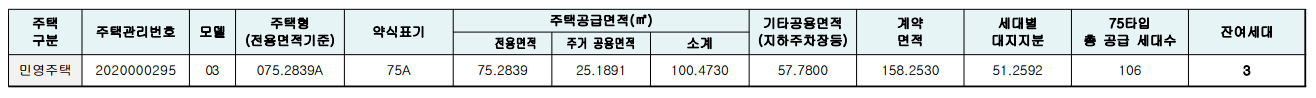 1) 잔여세대 : 75A 3세대