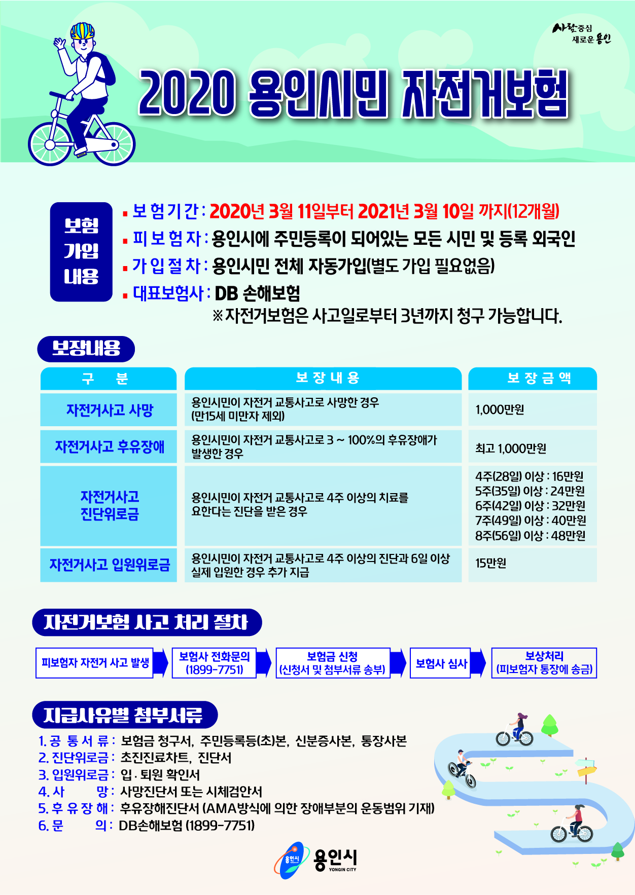 용인시에 주민등록이 되어있는 모든 시민 및 외국인까지 자전거 보험을 가입해주네요!
