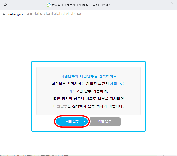 납부하는 형태 본인이 직접납부인지 타인의 명의를 이용한 납부인지 선택합니다.