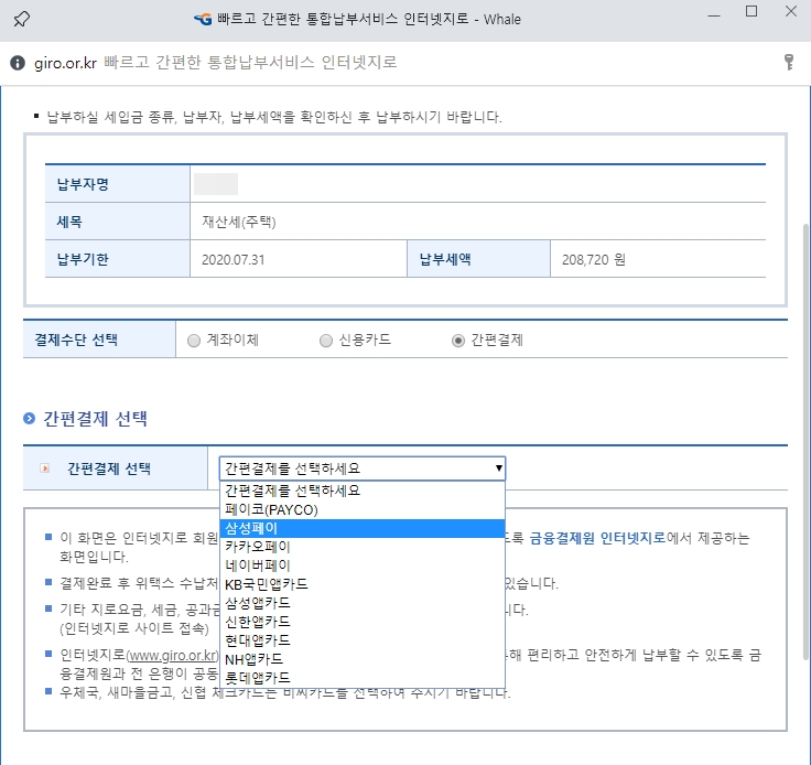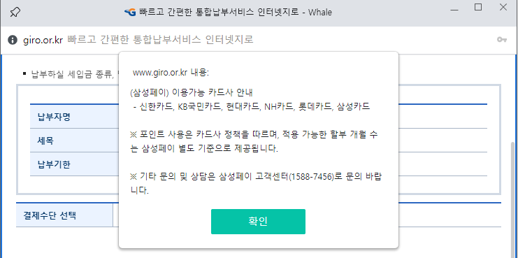 저는 마일리지 적립을 위하여 삼성페이를 이용해 납부해보려고합니다.