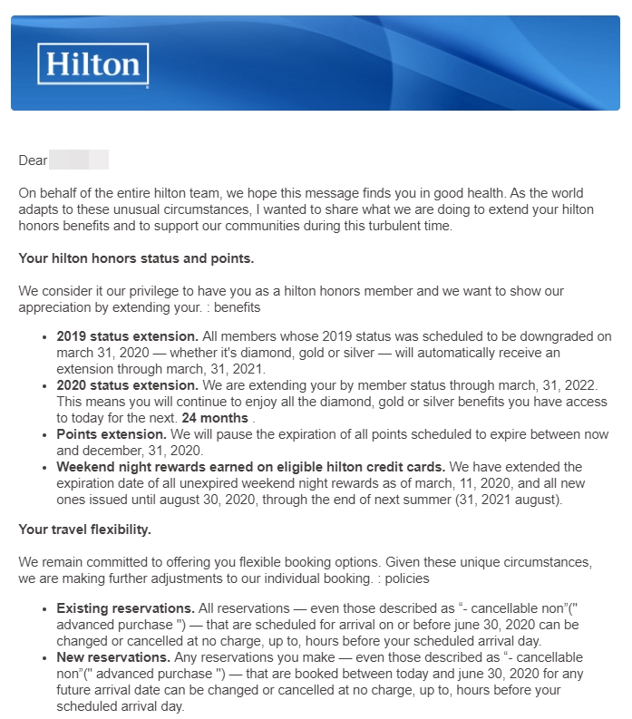 - Points Extension. We will pause the expiration of all Points scheduled to expire between now and December 31, 2020.