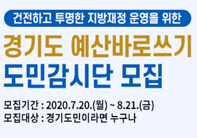 막을수 있는 자율 감시 체계를 마련하기 위하여 경기도 예산바로쓰기 도민감시단을 모집합니다.