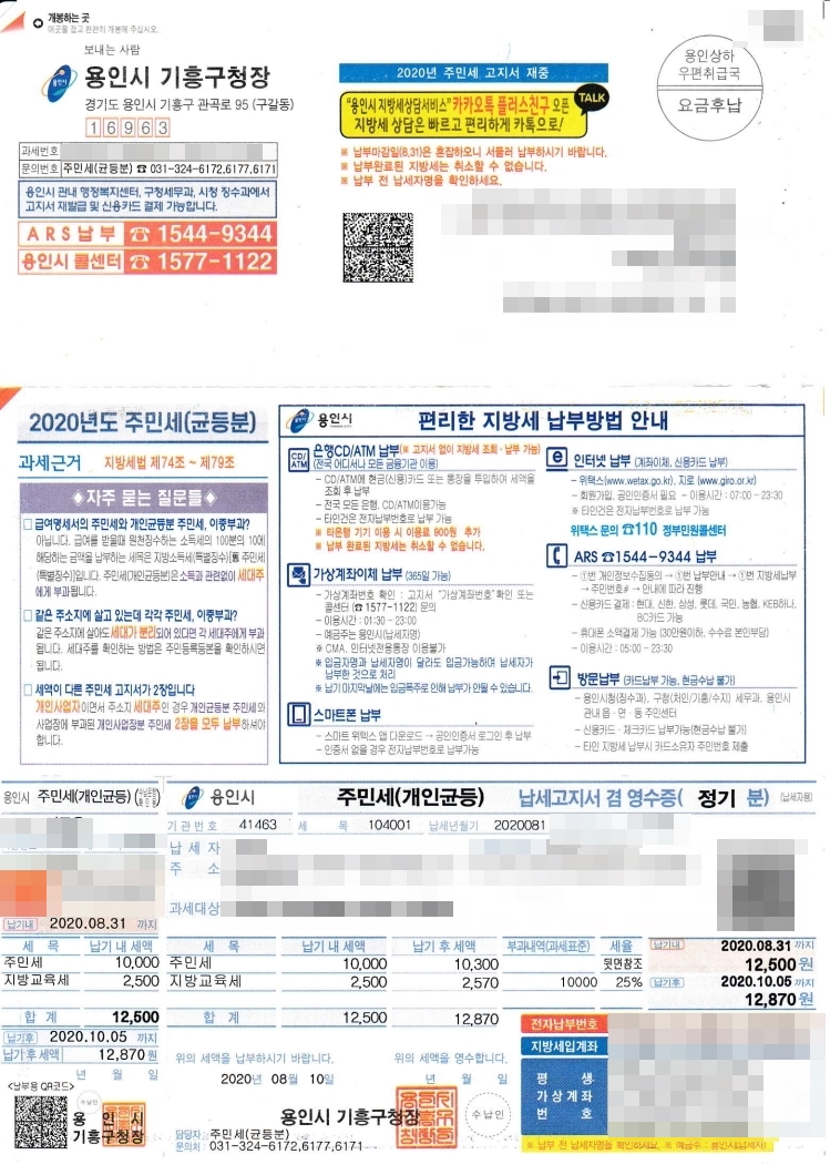 개인균등분 주민세와 사업장에 부과된 개인사업장분 주민세 2장을 납부하여야합니다.