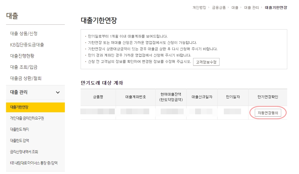 국민은행 대출 연장