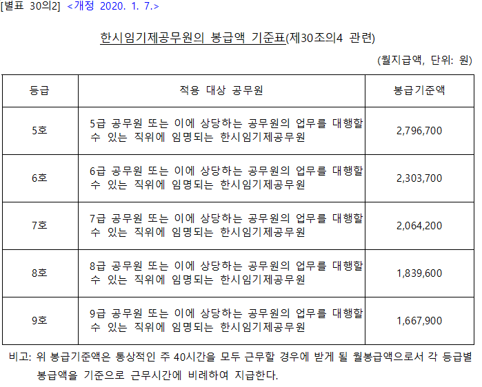 한시임기제 공무원 봉급액