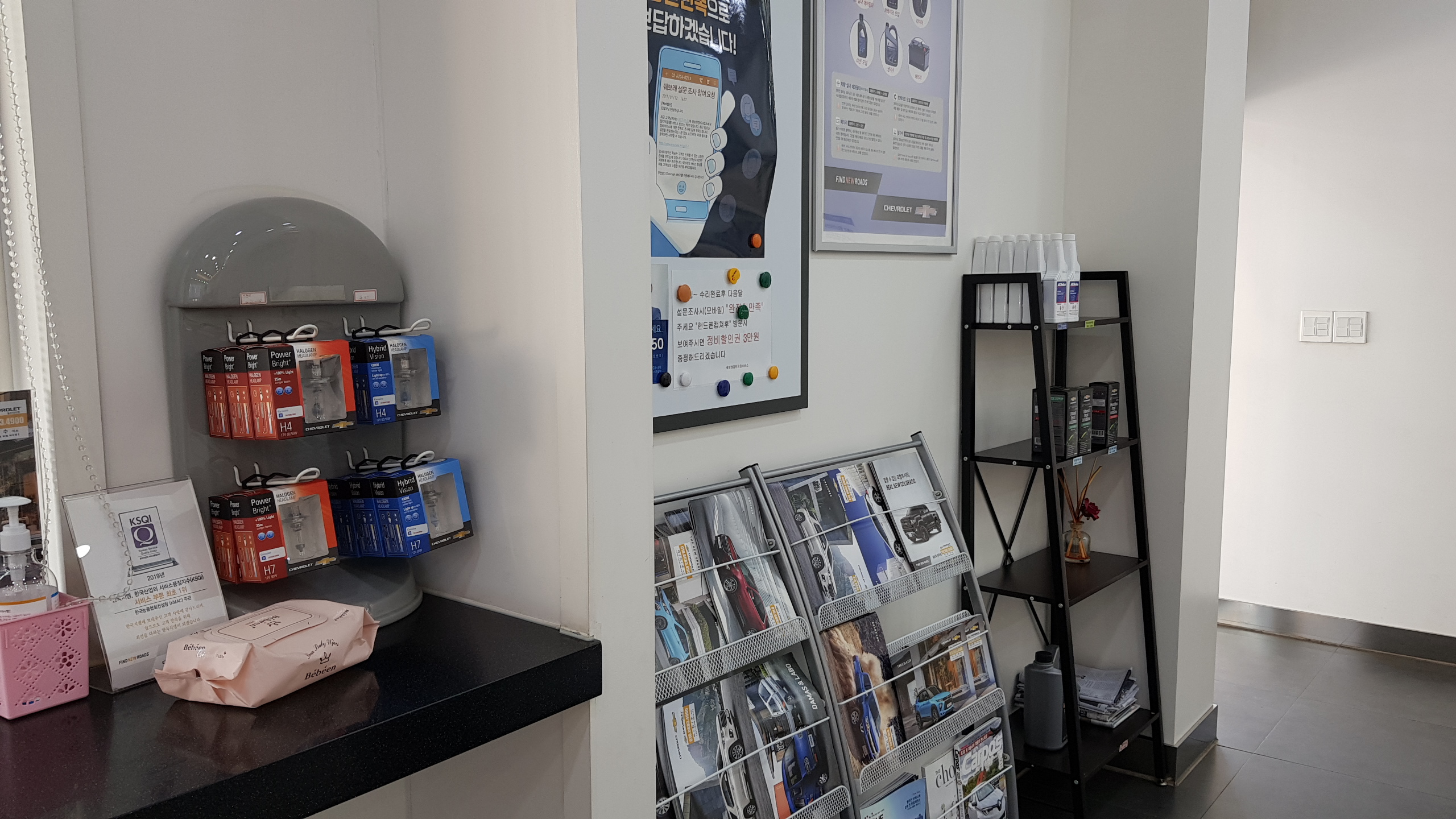 실내엔 다양한 편의시설(커피, 차, 충전기, 차량 잡지 등등) 깨끗하게 준비되어있구요~
