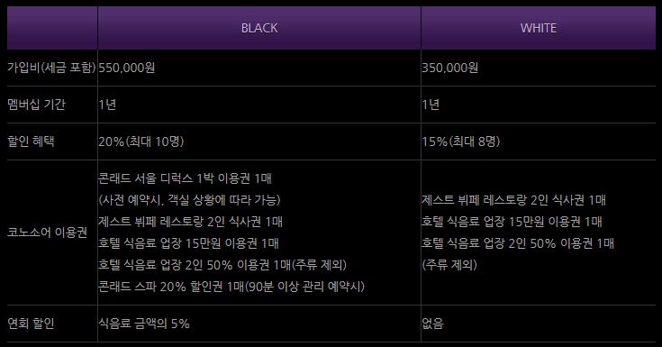 회원 가입시 이용권 제공 : 콘래드 서울 디럭스 1박 이용권 1매(사전 예약시, 객실 상황에 따라 가능),
