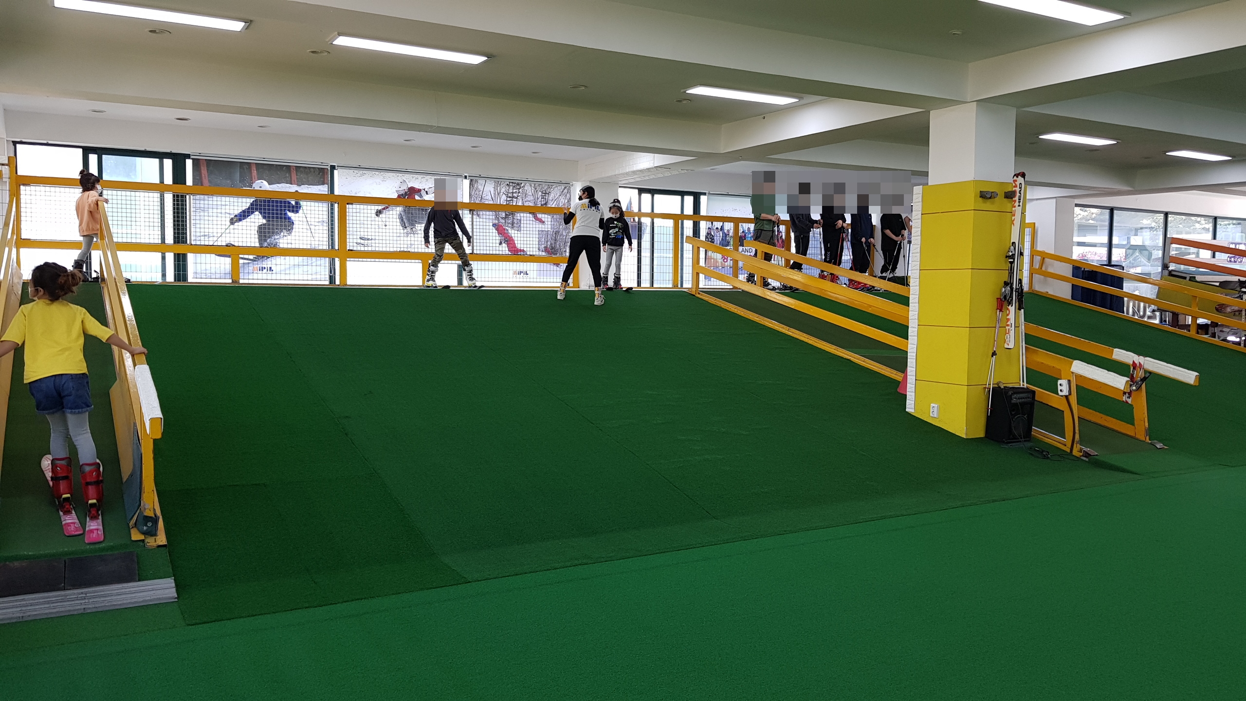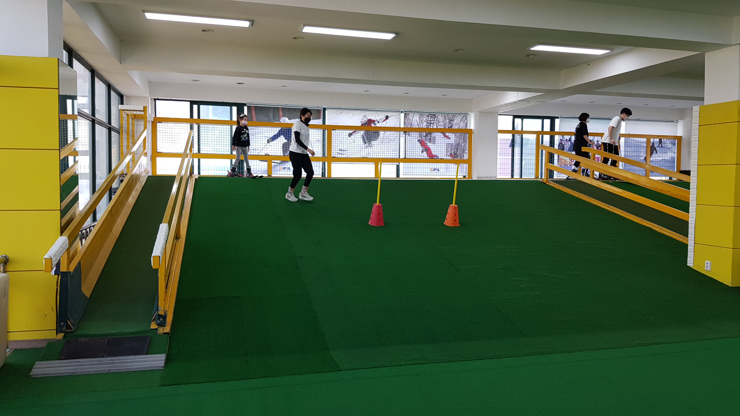 실내스키연습을 할수 있도록 총 3개의 인공잔디 슬로프가 있습니다.