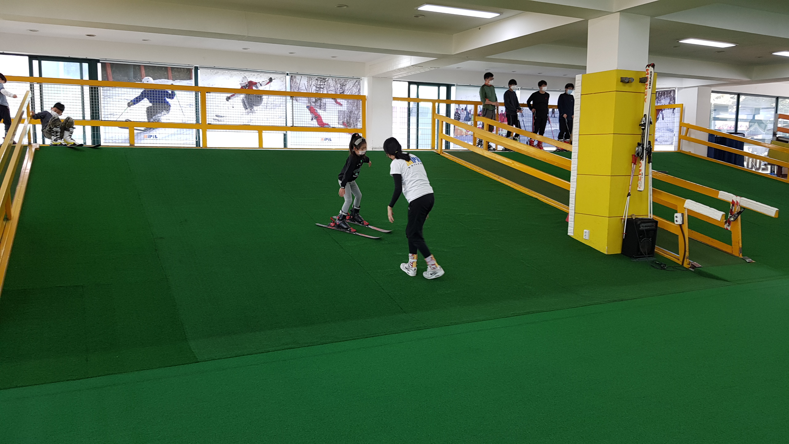 코로나로 인하여 실내 스키 레슨중에 모두 마스크 착용이구요..