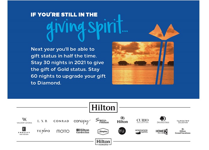 힐튼 골드 등급을 선물로 친구나 가족에게 선물해줄수 있다는 내용입니다.