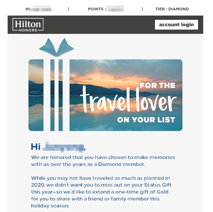혹시 힐튼 다이아몬드 및 골드 등급 이신 분들은 아래 메일을 받으셨을꺼 같은데