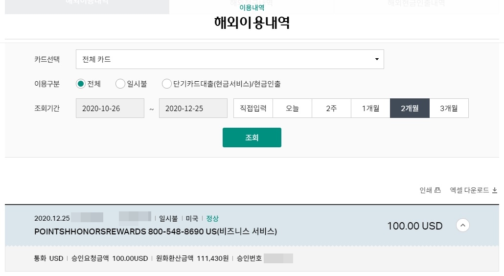 저는 10,000 +10,000 포인트 $100를 선택하였구요