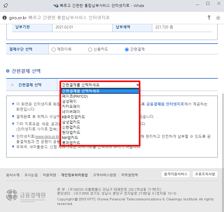 12월에 해당하는 14000원과 올해 연납분 221,720원이 조회되네요