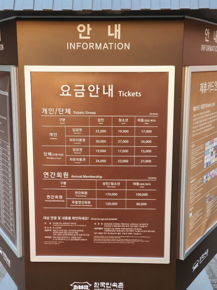 용인 한국민속촌은 입장료과 자유이용권으로 나뉘어 있으며