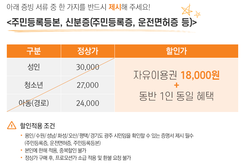 - 자유이용권 : 용인시민카드 60% 할인 - 12,000원