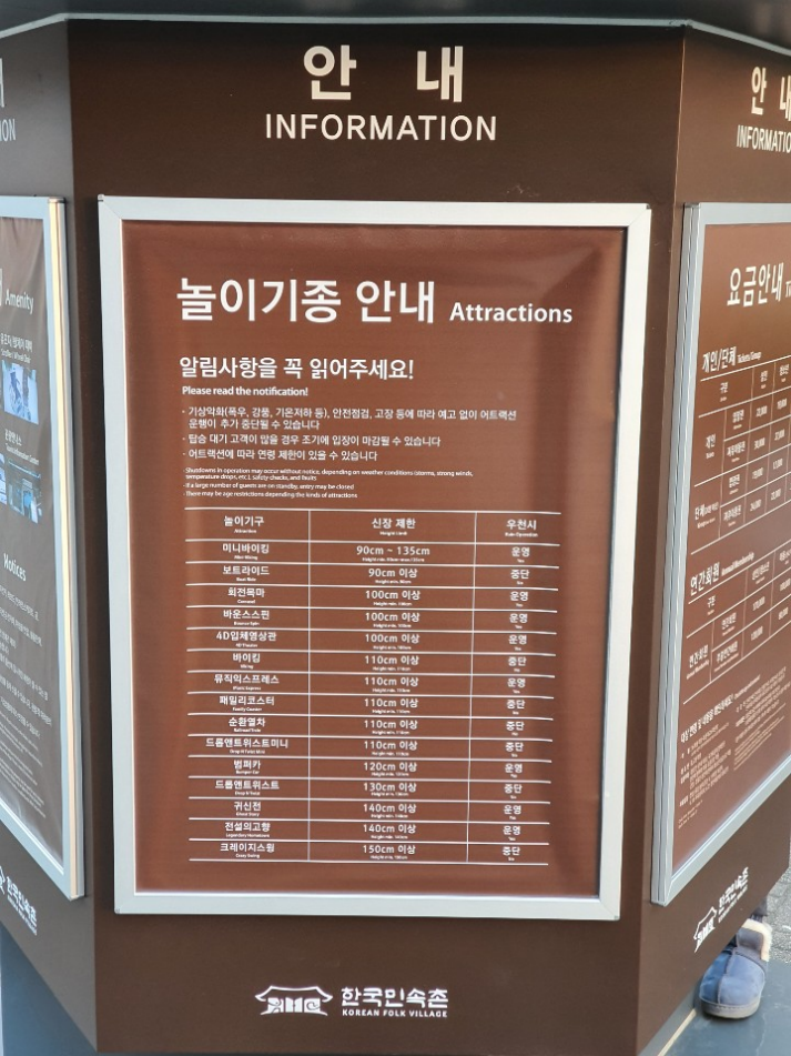 용인 한국민속촌 홈페이지에는 공유되어있지 않지만,