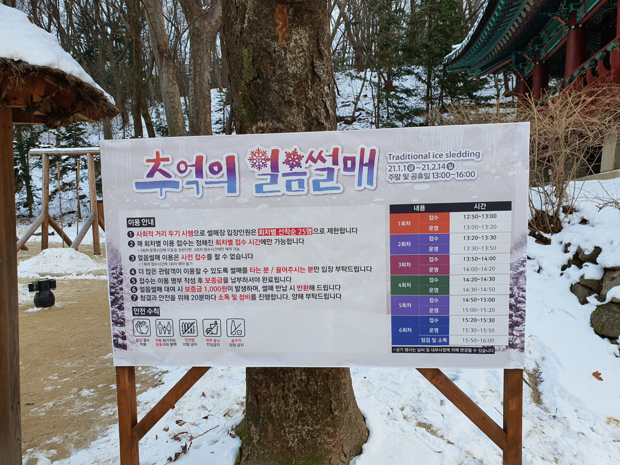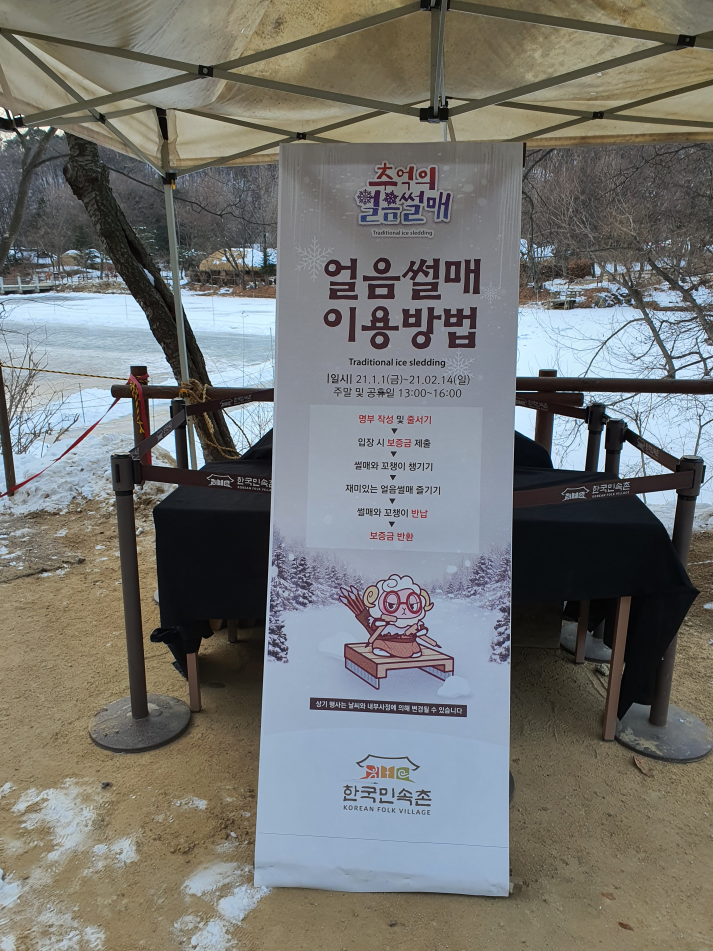 코로나 19로 인하여 용인민속촌 눈썰매장이 올해 개장하지 않아 아쉬웠는데