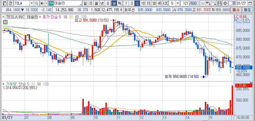 테슬라 역시 실적 발표 앞두고 2% 이상 떨어졌고