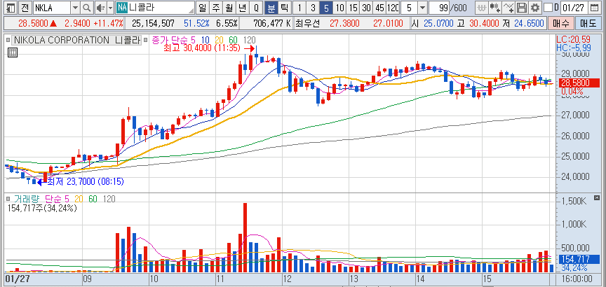 대부분의 미증시가 떨어졌는데 니콜라는 금일 11.47% 급등했네요