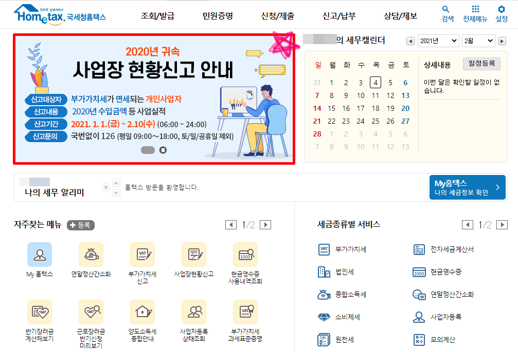 2021년 1월 1일부터 2월 10일까지는 부가세 면세사업자의 수입금액과 사업장 현황 등을 사업장 소재지 관할 세무서장에게 신고하는 사업장 현황신고 기간입니다.