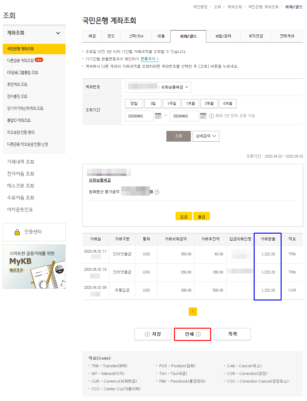 말이 길어졌는데 아래부터가 국민은행 달러 이체 내역 조회 방법입니다.