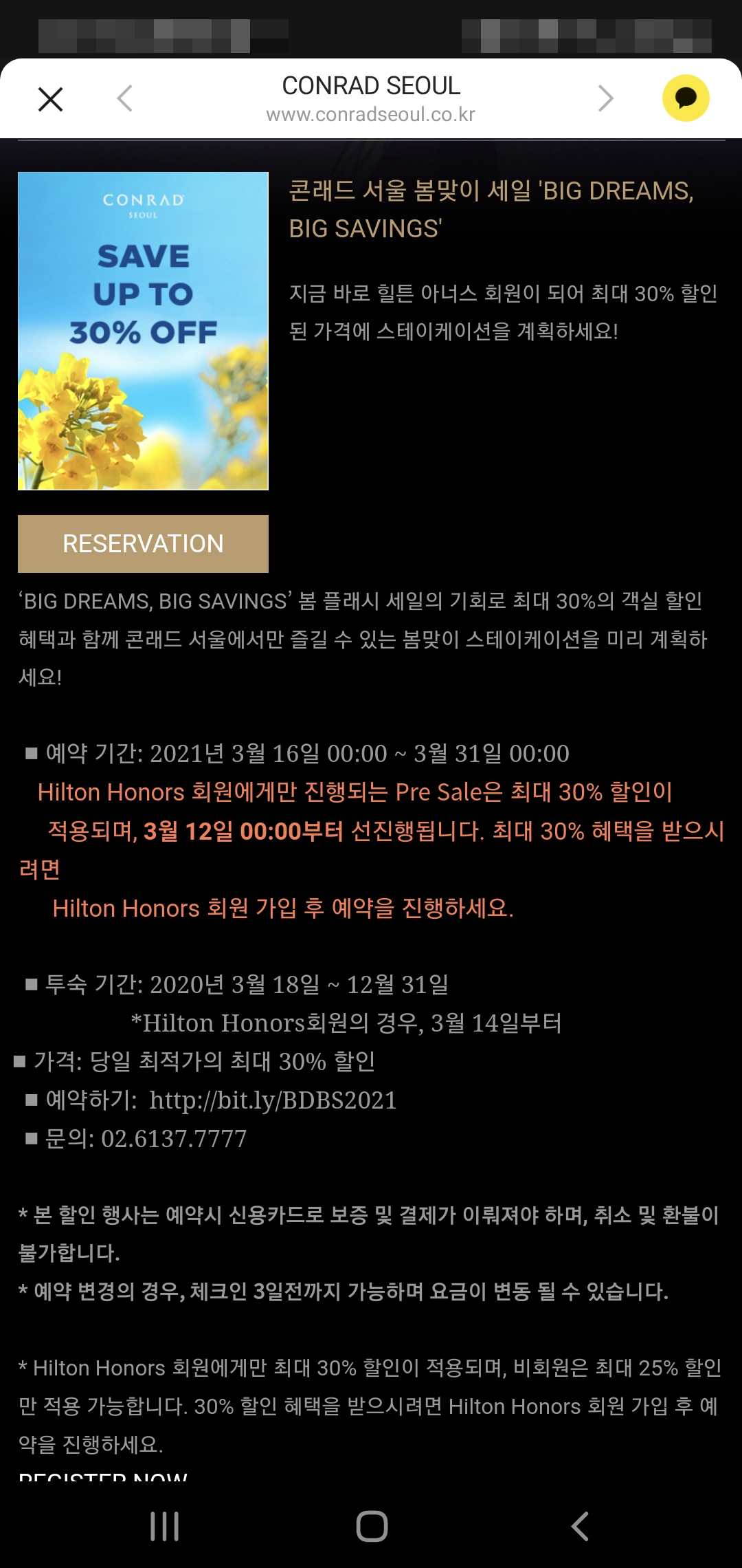 이번행사는 특이하게 힐튼과 콘래드 예약 일자 차이가 있습니다.