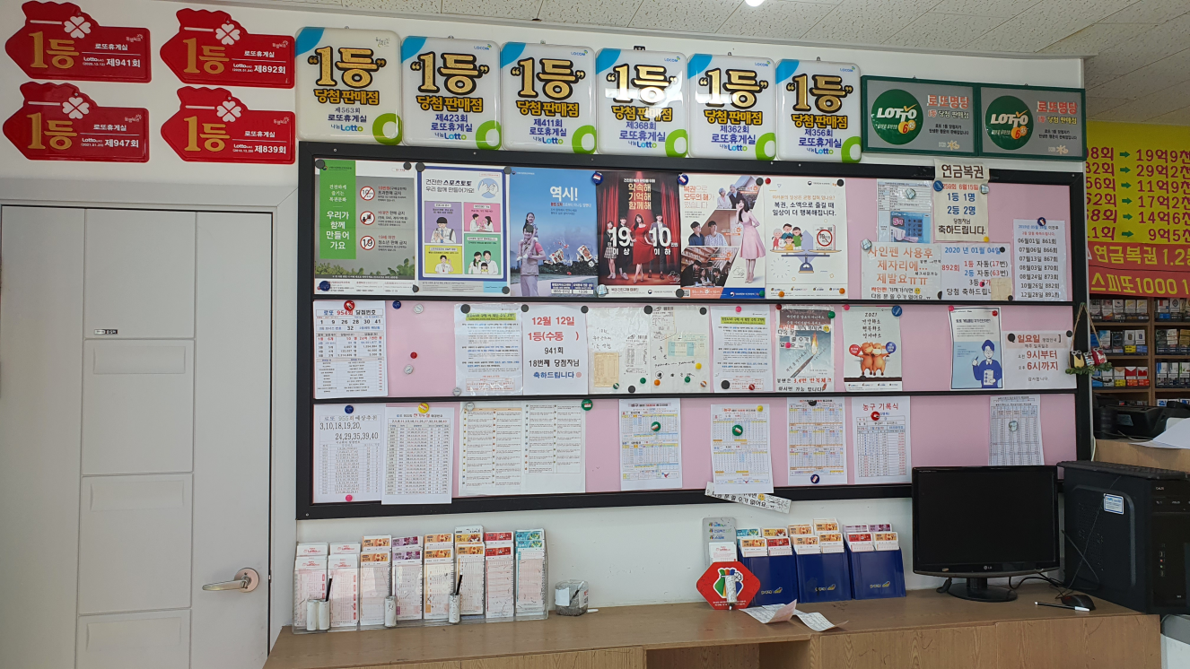 예전에 위치한 꽈배기집 옆의 행운복권방에서 만원으로 10장를 구매했습니다.