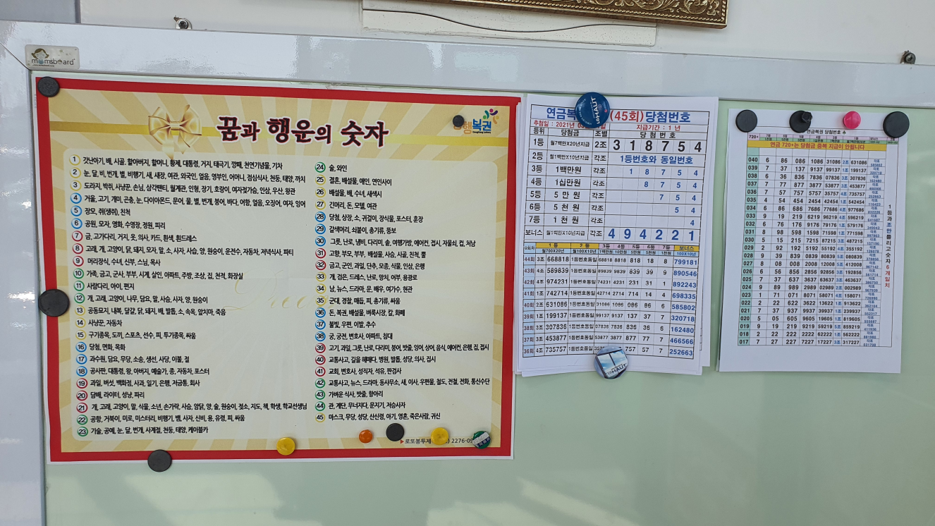 각종 운수에 맞는 숫자와 정보들이 게시판을 가득 채우고 있었습니다.