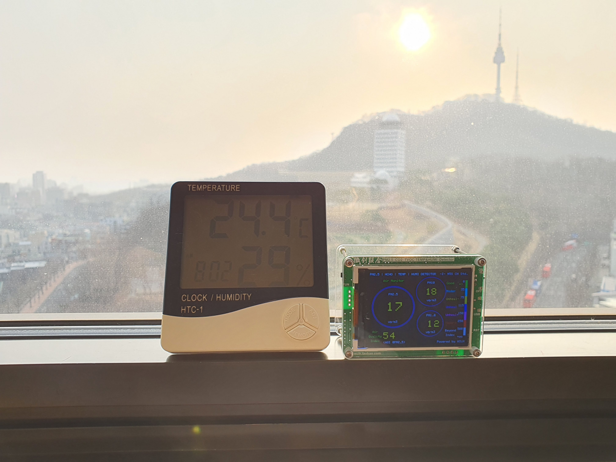 바깥이 뿌옇길래 창문 열어 바깥 미세먼지를 확인해보니
