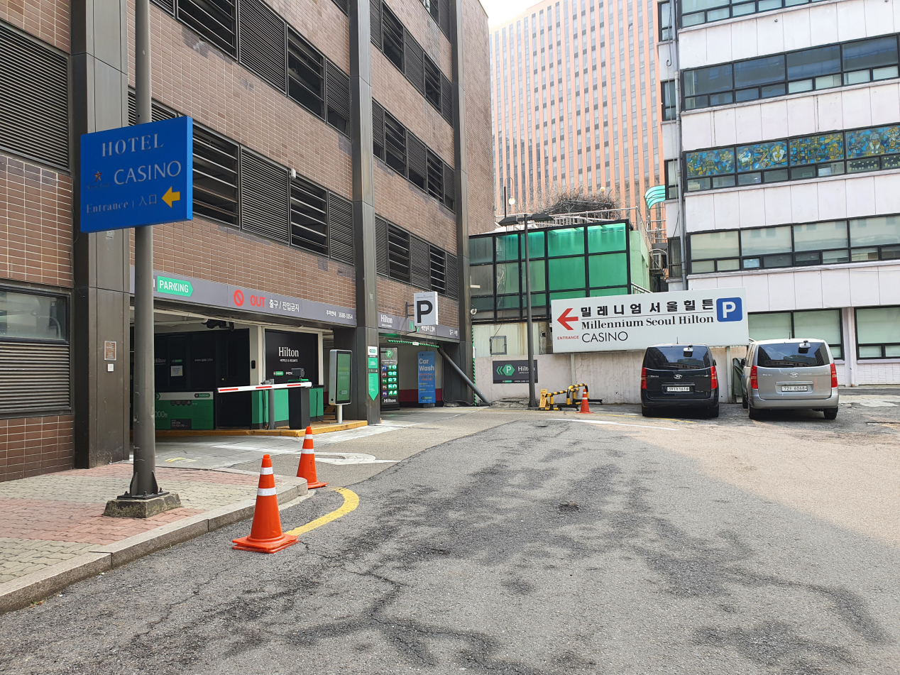 밀레니엄 힐튼의 주차장은 호텔 뒷편에 있어요