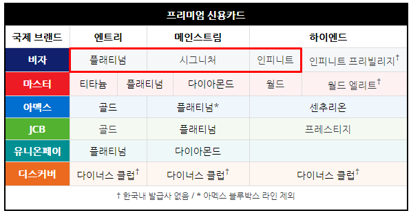 비자카드 등급 - 인피니트 시그니처 플래티넘