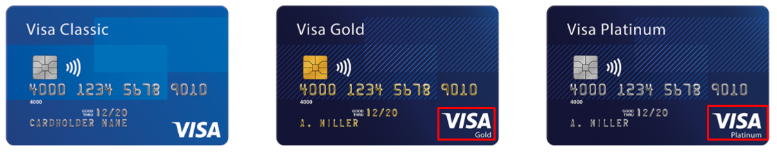 VISA 클래식, VISA 골드, VISA 플래티늄, VISA 시그니처, VISA 인피니트입니다.