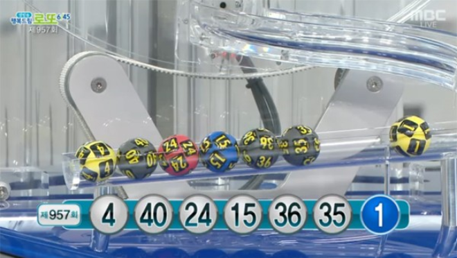 1등 당첨번호 4, 40, 24, 15, 36,35, 2등 보너스 번호 1