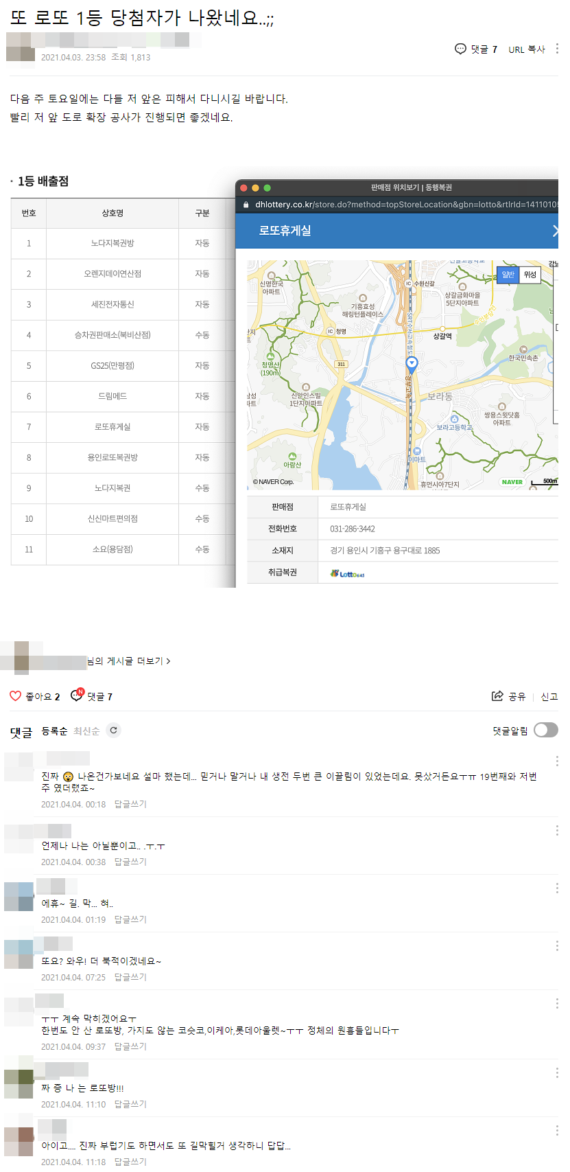 | 용인 보라동 로또명당 최다당첨, 로또 휴게실 (8) | 2021.03.17 |