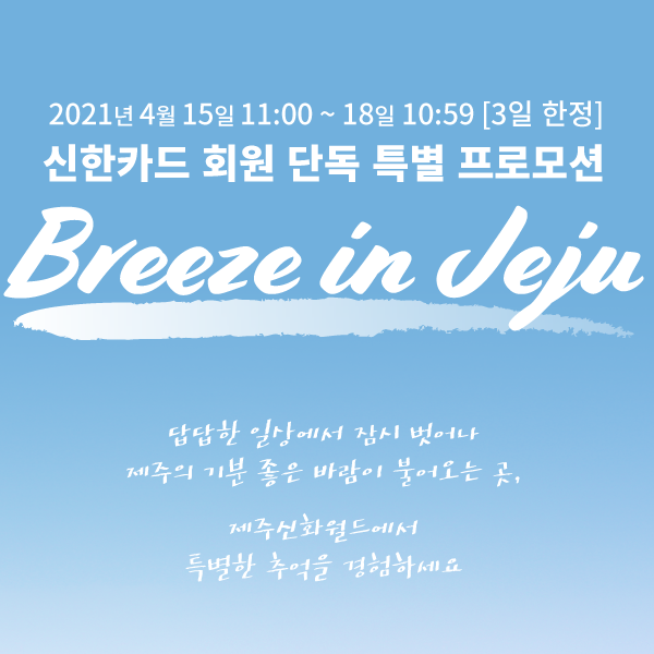 유선으로 예약 시 ‘신한카드 브리즈 인 제주 패키지’ 프로모션을 언급해주셔야 예약 가능