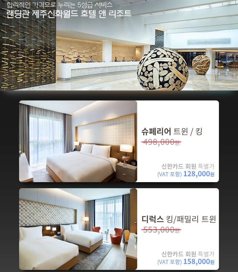 제주신화월드 메리어트관 호텔 앤 리조트와 랜딩관 호텔 앤 리조트 객실을 예약하실 수 있는 상품