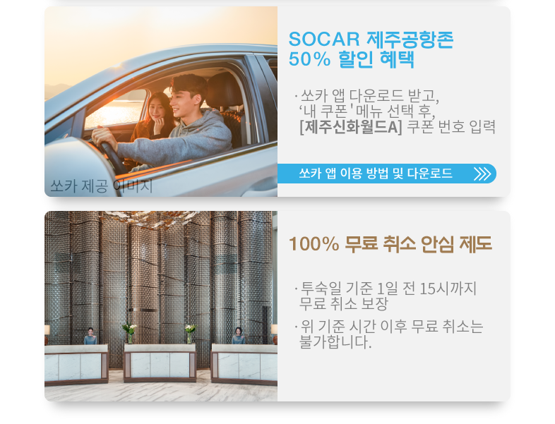 - 본 상품은 이벤트 페이지와 연결된 제주신화월드 이벤트 페이지를 통해서 빠르게 예약이 가능하여 온라인 예약