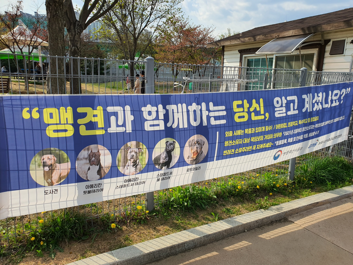맹견류는 입장이 불가하며, 별도 현수막 안내도 있어요