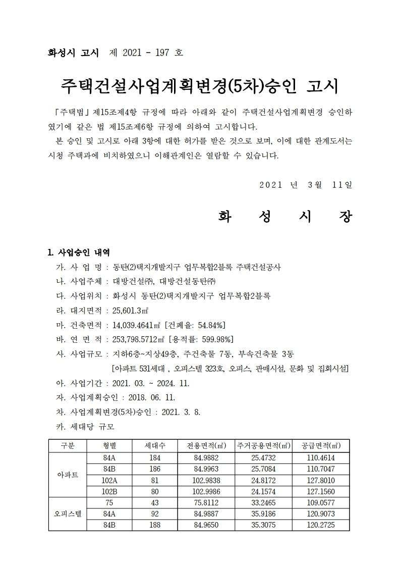 동탄역 디에트르 퍼스티지 주택건설사업계획 승인 고시