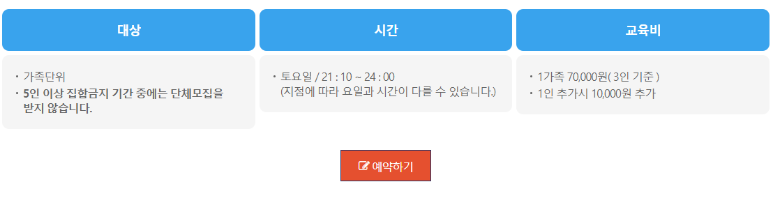 3인 기준으로 1가족이며, 추가 인원 발생시 1만원이추가되었습니다.