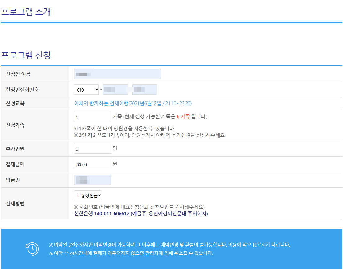 "아빠와 함께하는 천체여행"을 신청하였습니다.