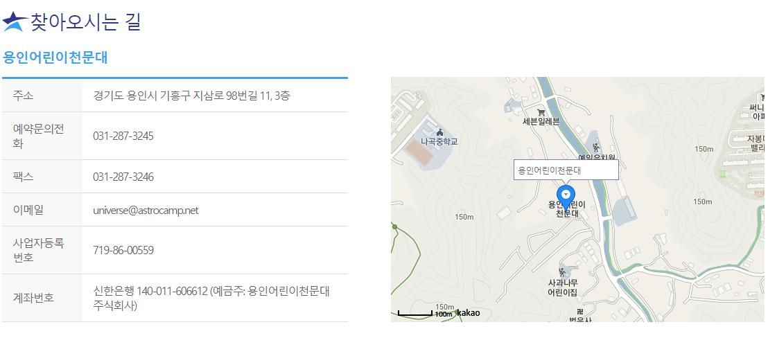 어린이 천문대 홈페이지 정보