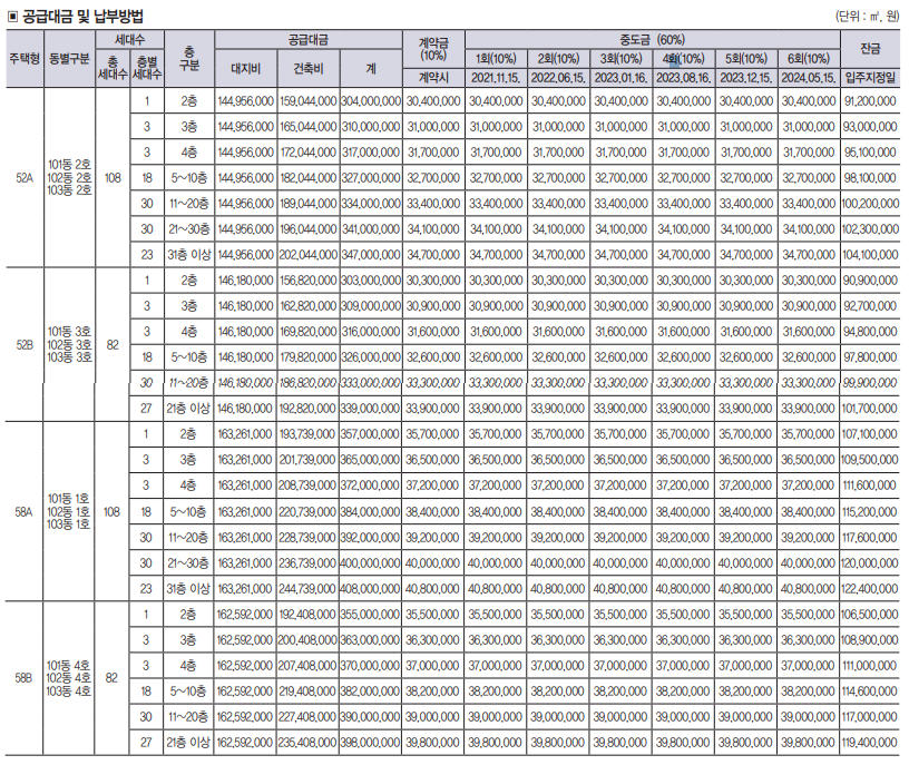 58타입은 3억 중반에서 4억정도 분양가로 공개되었습니다.