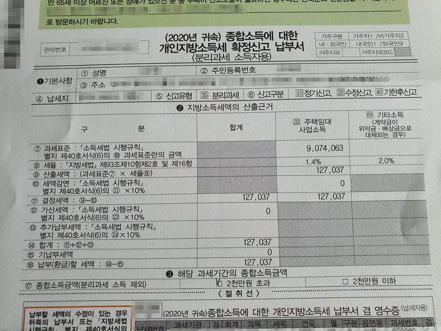 네번째장은 개인지방소득세 납부서로 구성되어있었습니다.